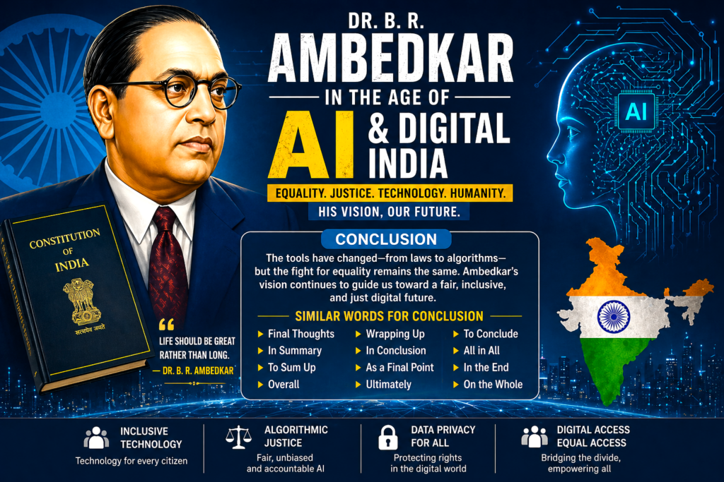 डॉ. बी. आर. आंबेडकरांची दूरदृष्टी केवळ भूतकाळापुरती मर्यादित नाही. ती भविष्यासाठी—विशेषतः कृत्रिम बुद्धिमत्तेच्या (Artificial Intelligence) युगात—एक मार्गदर्शक शक्ती आहे.