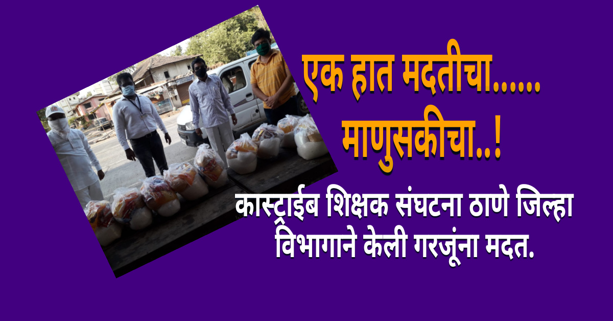 ठाणे जिल्ह्यातील कास्ट्राईब शिक्षक संघटनने वतीने लाॕकडाऊनमूळे हातावर पोट असणाऱ्या गरजू कुंटूंबांना अन्नधान्य स्वरुपात जीवनावश्यक वस्तुंचे वाटप करत आपण ही देशावर आलेल्या संकटात काम करत आम्ही ही मागे नाही याचे प्रत्यय दिले.