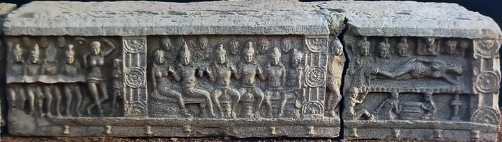 असे हे सौंदर्याने नटलेले शिल्प भारतीय शिल्पकलेत प्रथमच आढळले आहे. या शिल्पाच्यावर असलेल्या आडव्या तुळवीवर काही ओळी दिसत आहेत. तसेच सिंहासनाच्या उजव्या बाजूला असलेल्या स्तंभावर वर्तुळाकार कमळचित्रे यांचे नक्षीकाम केलेले आढळते. स्तंभावर वरच्या बाजूस एक धड असलेले दोन सिंह दाखविलेले आहेत. त्यांची आयाळ सुद्धा स्पष्ट दिसून येते. तसेच त्याच्याखाली लहान गजराज यांच्या प्रतिमा कोरलेल्या आढळतात. याच शिल्पा प्रमाणे दुसरे एक भंगलेले शिल्प आढळून आले आहे. त्यात रिक्त सिंहासनाच्या पाठीमागे असलेल्या बोधिवृक्षास सम्राट अशोक वंदन करीत असल्याचे दिसत आहे.
