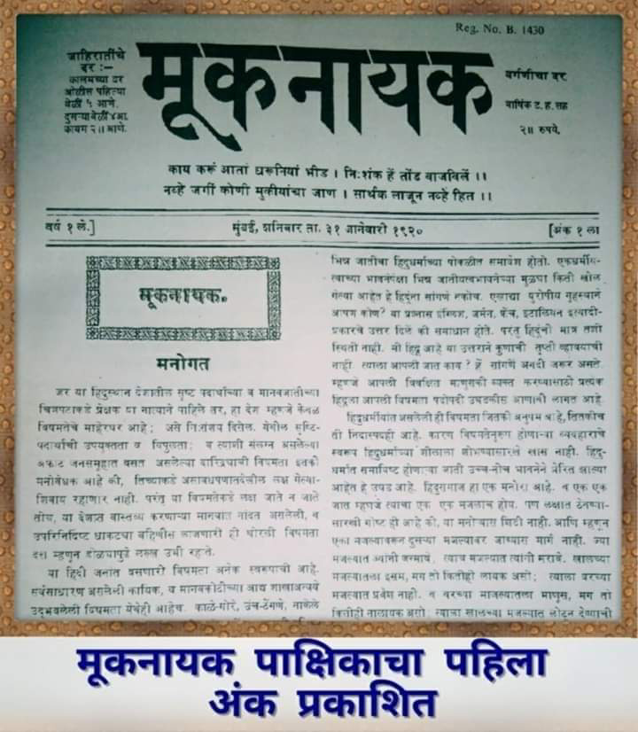 मुंबई,दि 24 (प्रतिनिधी)भारतरत्न डॉ बाबासाहेब आंबेडकर यांनी चालवलेल्या मूकनायक या पहिल्या पाक्षिकाची शताब्दी येत्या 31 जानेवारी (शुक्रवार) रोजी महाराष्ट्रासह देशभरात साजरी होणार आहे. त्यानिम्मित संध्याकाळी 5 वाजता मुंबई मराठी पत्रकार संघाच्या सभागृहात मूकनायक राष्ट्रीय सन्मान 2020 हा शानदार सोहळा पार पडणार आहे.