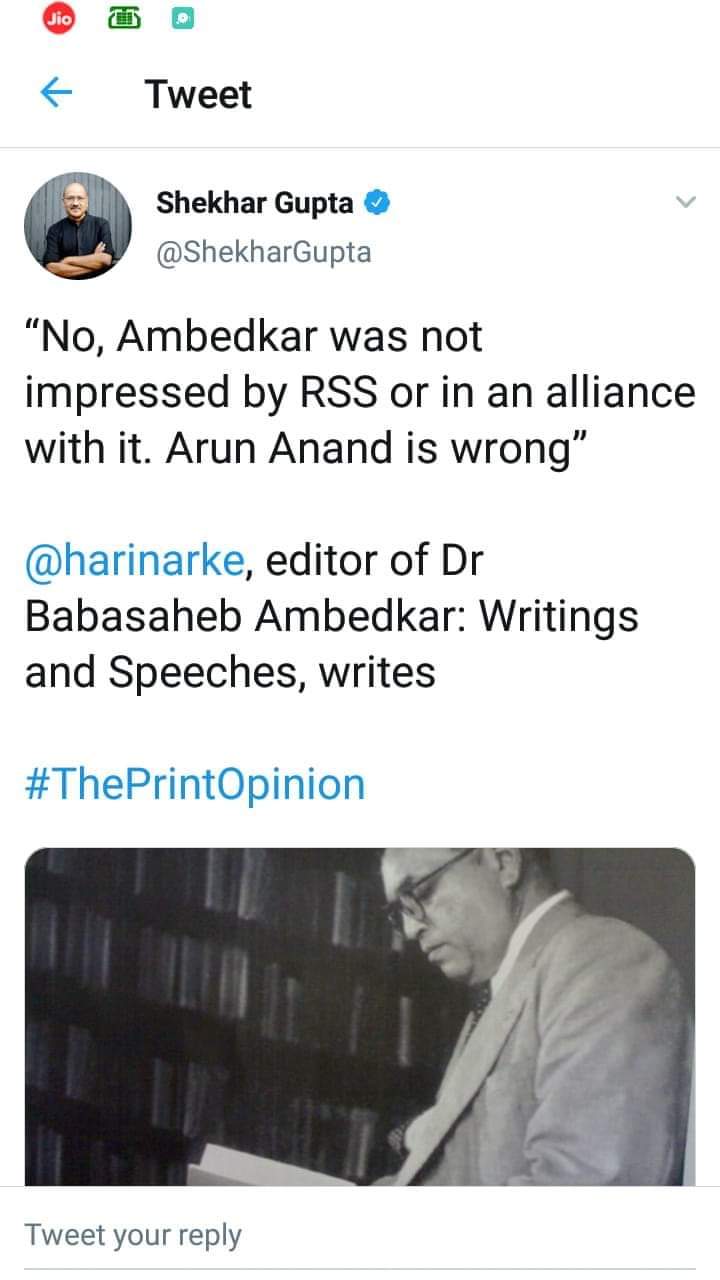 डॉ बाबासाहेब आंबेडकर यांच्याविषयी बदनामीकारक व्हिडीओ तयार करणारे पत्रकार अरुण आनंद यांचे ‘ Know the RSS ( संघ जाणून घ्या) हे पुस्तक प्रसिद्ध झालेले आहे। त्यांच्या व्हिडिओमुळे प्रिंटचे संपादक शेखर गुप्ता हे चांगलेच गोत्यात आले आहेत। त्यामुळे त्यांनी संघीय पत्रकार अरुण आनंद यांच्या खोटारडेपणाची आणि आपल्या चुकीची कबुली दिली आहे। इतकेच नव्हे तर, त्या व्हिडिओचे पोलखोल करणारा प्रा हरी नरके यांचा लेखही गुप्ता यांनी प्रिंटवर प्रकाशित केला आहे।