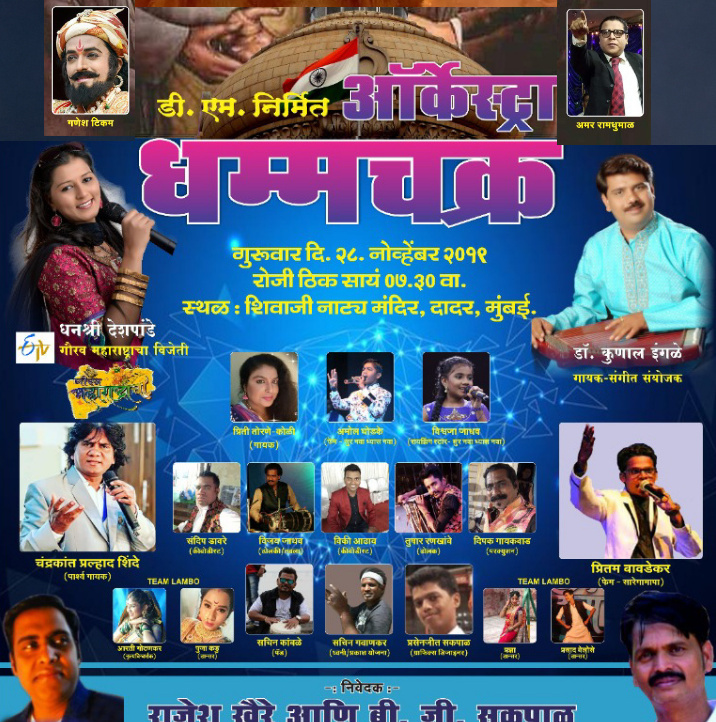 सायं.७.३० ते ९.३० बुद्ध-भिम गीतांचा अनोखा अविष्कार… अर्थात DM प्रस्तुत #धम्मचक्र म्युझिकल ऑर्केस्ट्रा……!..