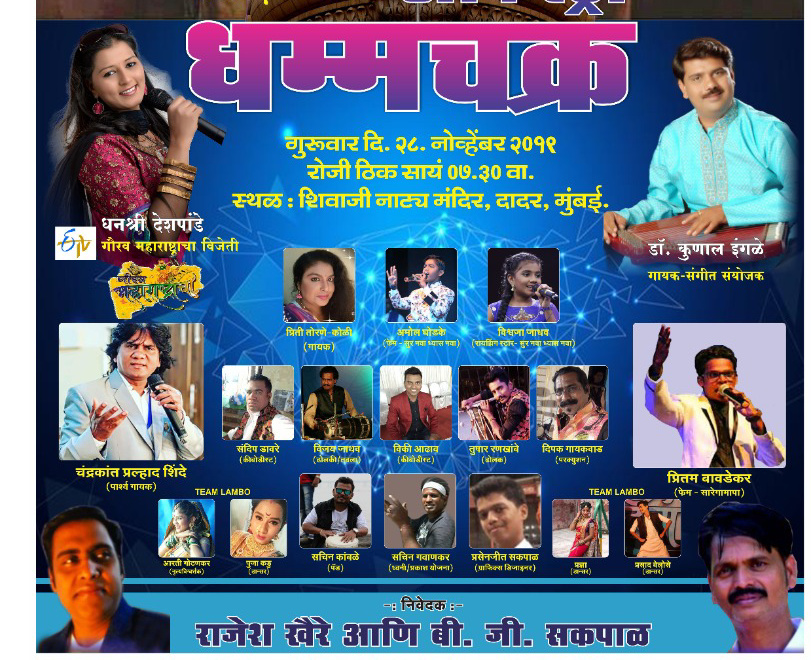 आपल्या २५८ व्या प्रयोग साजरा करणार धम्मचक्र ऑर्केस्ट्रा हा आंबेडकरी चळवळीतील पहिला ऑर्केस्ट्रा आहे .आतापर्यंतचा २३ वर्षांचा प्रवास या ऑर्केस्ट्राच्या माध्यमातुन सामाजिक प्रबोधन करणारे मा.राजेश खैरे ,मा उत्तम चाफे आणि मा बी.जी.सकपाळ,संजय कांबळे,बबन जाधव यांनी उत्तम कार्यक्रमाचे देखणे आयोजन करून उपस्थित लोकांची मनें जिंकून टाकली. जवळपास सर्वच सत्कारमूर्ति कलाकारांनीं आपली कला सादर केली लहानगी विश्वाजा ,लहानगा अमोल यांनी तर बेफाम गाणं गात मंत्र मुग्ध केले . प्रीतम बावडेकर,चंद्रकांत दादा शिंदे यांनी हादरून सोडलें. गायीका प्रिती तोरणे/कोळी हिच्या बहारदार गीतांच्या सादरीकरणाने प्रेक्षकांचे लक्ष वेधुन घेतले.रिदमिस्ट एकापेक्षा एक वादक त्यापैकी संगीत क्षेत्रातील नामवंत वादक विजय जाधव ,संदिप डावरे, विकि आढाव,तुषार रणखांबे,सचिन कांबळे,दिपक गायकवाड यांनी खुप छान अस संगीत दिले त्यांचा वाद्यवृंदाने रसिक प्रेक्षकांना वेडावून सोडल.तसेच DANCE GROUP LAMBO आरती गोठणकर यांनी छान नृत्य प्रदर्शन केले.या कार्यक्रमाला ज्यांनी सहकार्य केले ते मा.मिलिंद धोत्रे साहेब,प्रकाश मोरे साहेब,सुनिल देवळेकर साहेब,प्रकाश कांबळे साहेब,मनोज जाधव,अनिल खैरै,आणि निशांत भगत साहेब या कार्यक्रमाला हजर होते .
