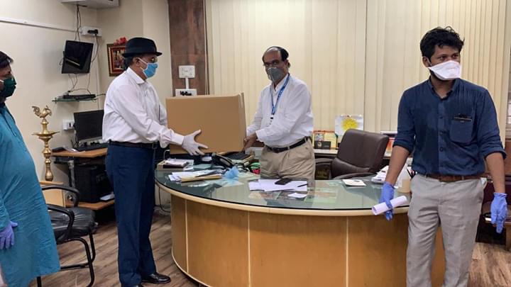 त्यानुसार आज दुपारी नायर रुग्णालयाचे अधिष्ठाता मोहन जोशी यांची भेट घेऊन कोरोना रुग्णांच्या संपर्कात येणारे डॉक्टर,नर्सेस आणि कर्मचाऱ्यांना सुमारे 2 लाख रुपये किंमतीचे PPE किट आणि फेस सिल्ड साहित्य देण्यात आले. वंचित बहुजन आघाडीचे उपाध्यक्ष धनराज वंजारी यांच्या उपस्थितीत हे साहित्य देण्यात आले. यावेळी स्वेल वाघमारे, महेंद्र रोकडे हे पदाधिकारी उपस्थित होते.