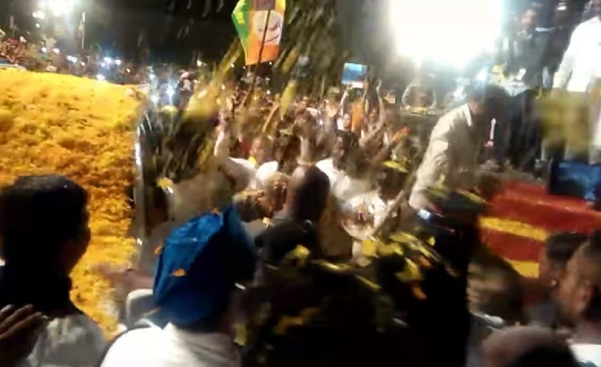 सभेला अफाट गर्दी अनुयायांनी केली पुष्पवृष्टी